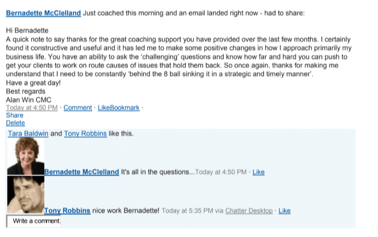 Bernadette gave me new insights into the sales process, and helped me immensely to refocus my selling into a more psychological and conversational sale. Delight to work with and well worth the investment. Definitely set me up for the future!